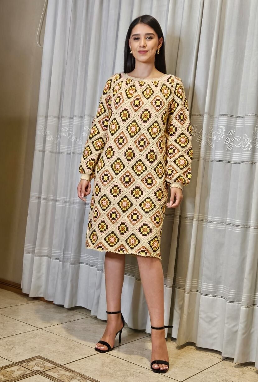 Vestido para dama tejido en crochet talla de mediana a grande, realizado con hilaza de algodon